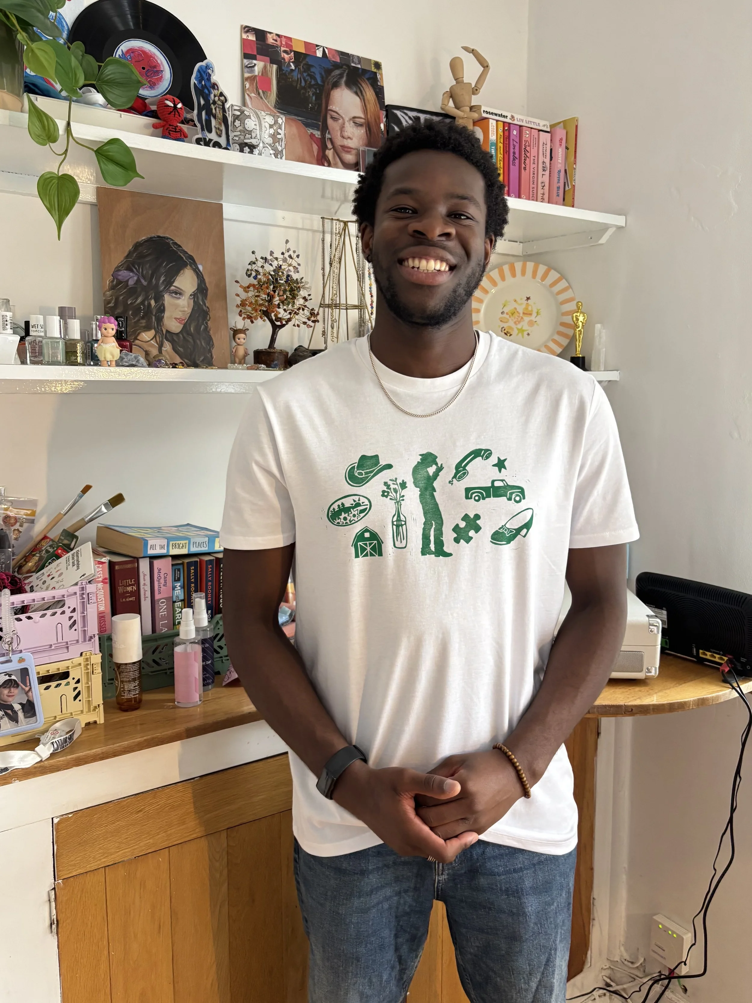 I drew imagery inspired by the lyrics of Role Models' second studio album. I focused on clear shapes and lines to create interesting silhouettes for the design. Since Lino print is my preferred medium for t-shirt making, I was mindful of this throughout the design process.