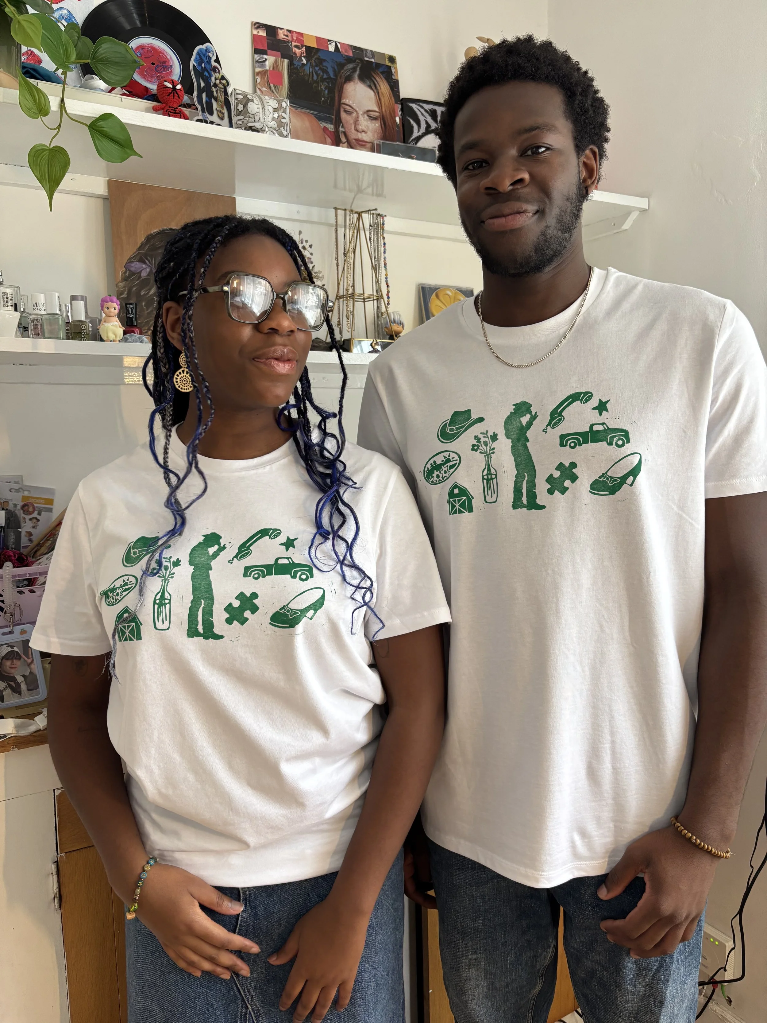This self-commissioned project involved designing a T-shirt inspired by the Album ‘Kansas Anymore’ by Role Model. I created sustainable hand-printed tees using linocut.